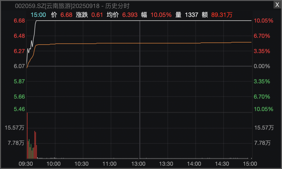 市场热点方面,旅游股全线走强,板块指数在午后大盘下跌过程中多次放量逆市拉升,最终以大涨2.55%报收。云南旅游(002059)连续第2日涨停,曲江文旅(600706)(600706)则在临近收盘最后半小时直线涨停,西藏旅游(600749)、西安旅游(000610)、丽江股份(002033)等午后均逆市大幅拉升。