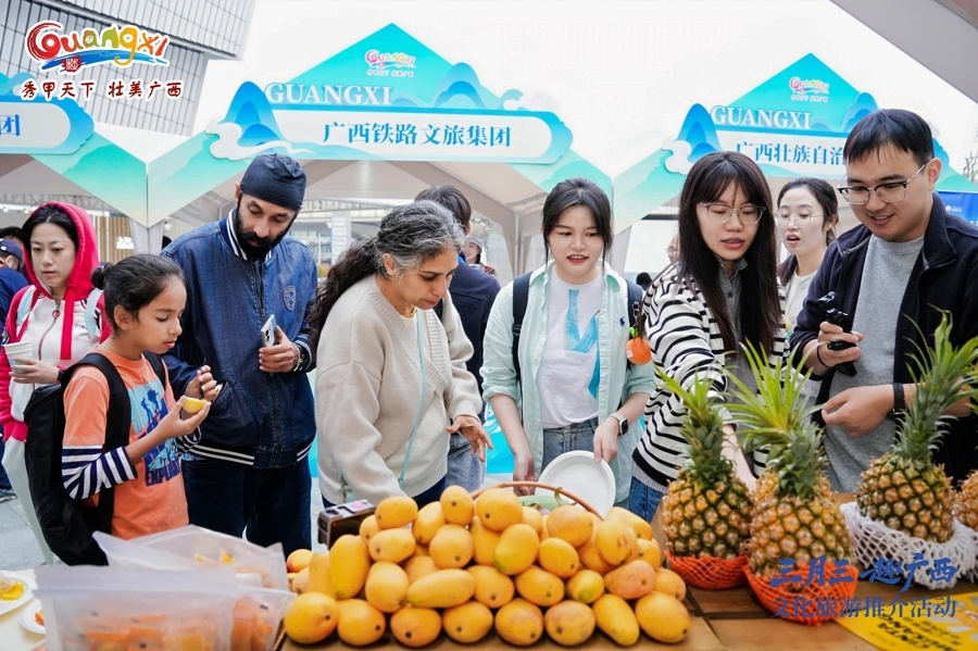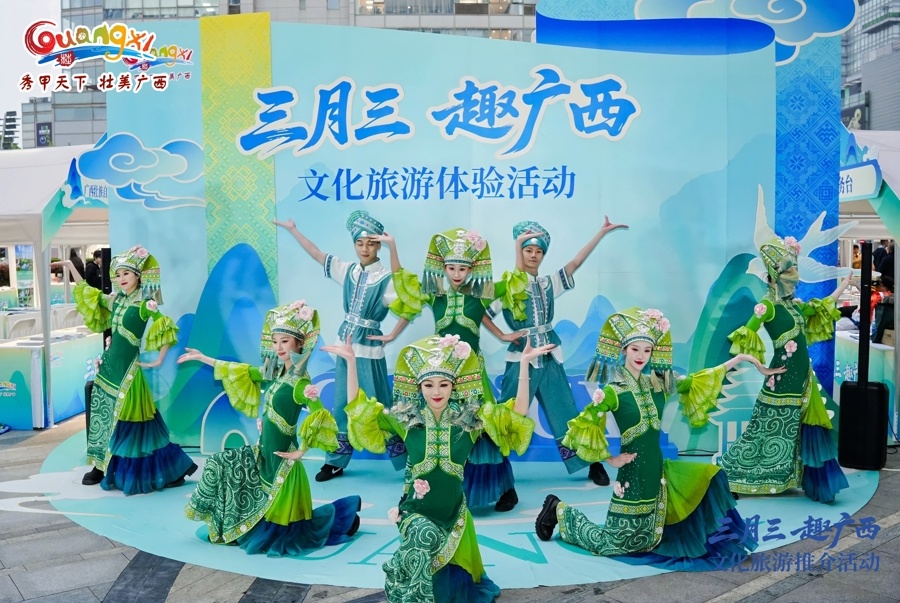 4月13日下午,“三月三 趣广西”文化旅游体验活动在上海久光中心举办,现场集中展示了“春假来广西,畅游畅购三月三”优惠措施、“秀甲天下 壮美广西”广西文化旅游精品线路、“跟着徐霞客游广西”桂北春游主题线路、“下一站广西”240小时跨(入)境旅游线路与政策,联动广西14个设区市及多个主协办部门开设文旅市集,并推出民族歌舞、美食游戏、推介互动等内容,让上海市民切身感受广西的风土人情。