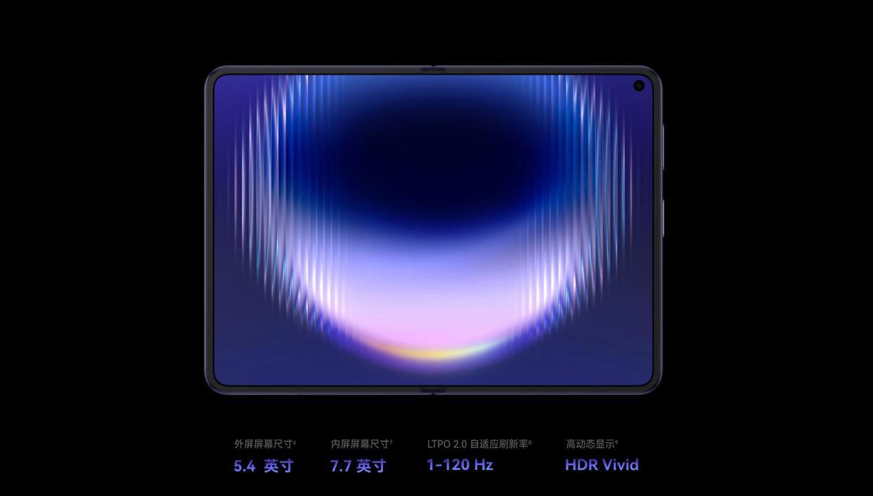 参数上,内外两块屏均支持 1-120Hz LTPO 自适应刷新率,1440Hz 高频 PWM 调光。其中,外屏覆盖第二代昆仑玻璃盖板,内屏有 UTG 玻璃。